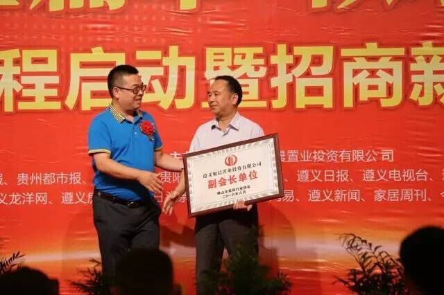 (遵義市室內(nèi)裝飾協(xié)會會長傅會相先生代表協(xié)會授予九鼎國際建材家居城 “遵義市室內(nèi)裝飾協(xié)會會員單位”牌匾)