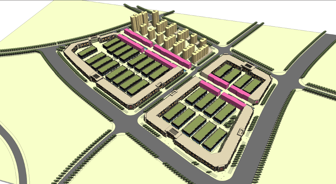 本項(xiàng)目總體布局分三個(gè)層次:第一層次為地塊北面緊鄰322國(guó)道,商業(yè)價(jià)值面最高,建議水泥路左側(cè)緊鄰國(guó)道處規(guī)劃箱體式建筑(預(yù)計(jì)引進(jìn)主力品牌店紅星美凱龍家具建材賣(mài)場(chǎng));水泥路右側(cè)沿國(guó)道處規(guī)劃三層商用物業(yè),一層為臨街通鋪,二、三規(guī)劃商務(wù)酒店、辦公物業(yè)等;第二層次在地塊中間,以專(zhuān)業(yè)市場(chǎng)鋪面及冷庫(kù)、大車(chē)停車(chē)場(chǎng)功能規(guī)劃為主;第三層次為項(xiàng)目地塊東南側(cè),緊鄰山體,自然環(huán)境較好且安靜,規(guī)劃高層居住物業(yè)。