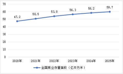 圖1:2020-2025年全國(guó)商業(yè)存量面積變化曲線