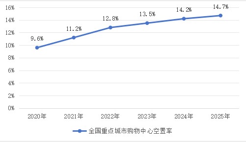 圖2:2020-2025年重點(diǎn)城市購(gòu)物中心空置率變化曲線