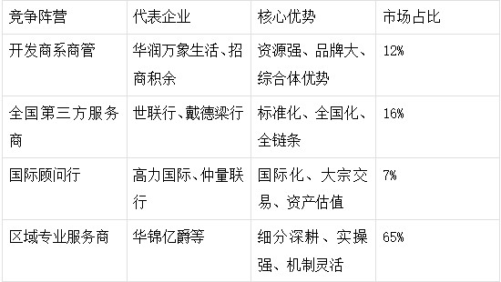 表3:中國(guó)商業(yè)地產(chǎn)服務(wù)行業(yè)競(jìng)爭(zhēng)格局